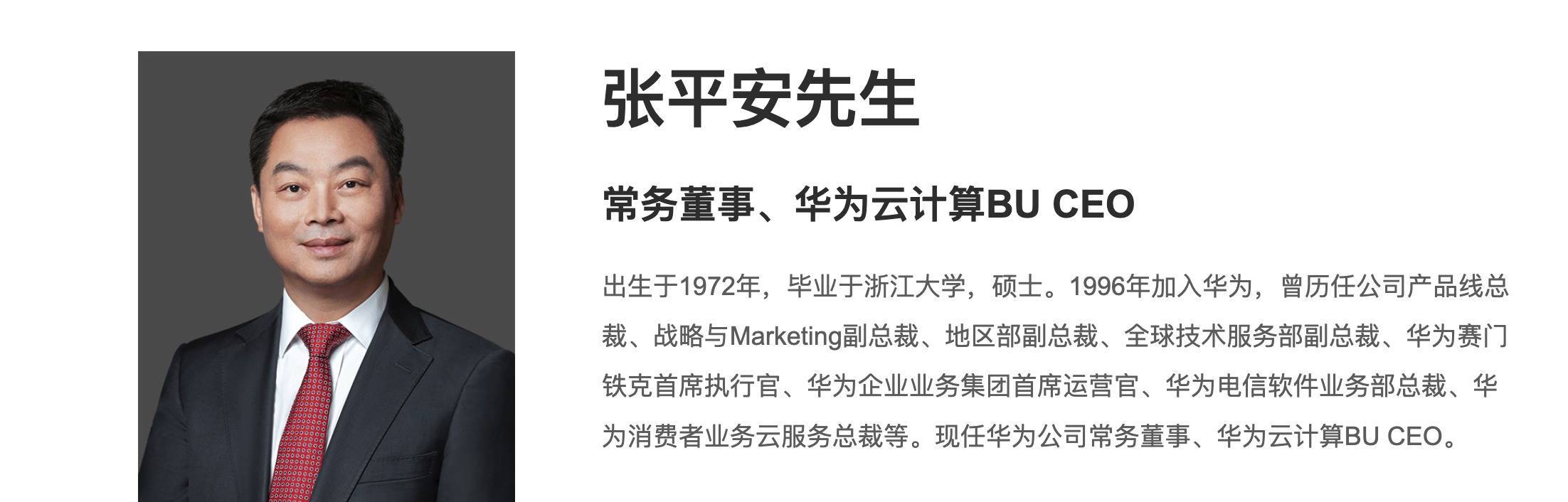 华为云自2017年作为独立业务单元成立以来,至今分别经历了郑叶来、侯金龙、余承东、张平安和周跃峰五任CEO。张平安任华为云CEO已超四年,是目前任期最久的华为云CEO。